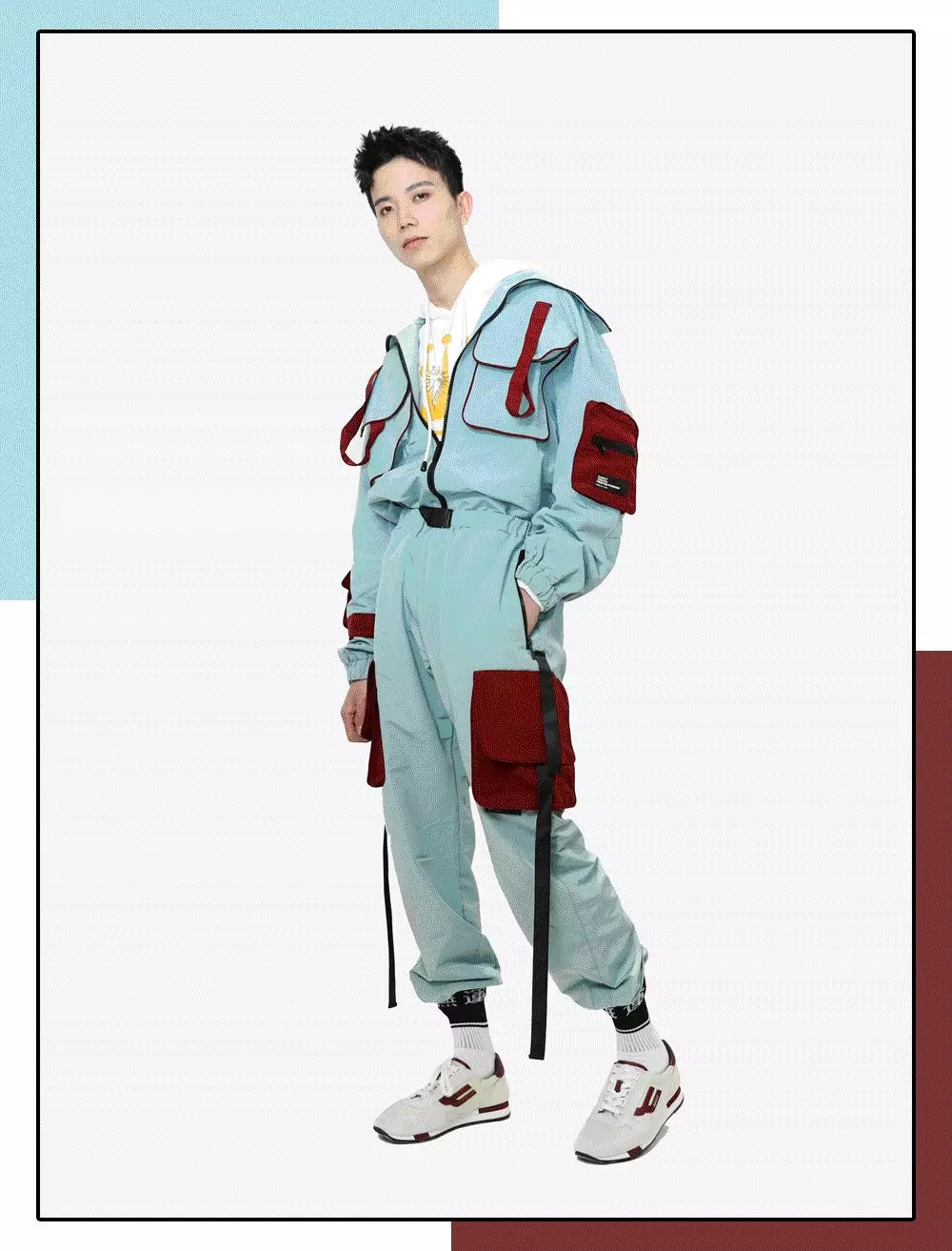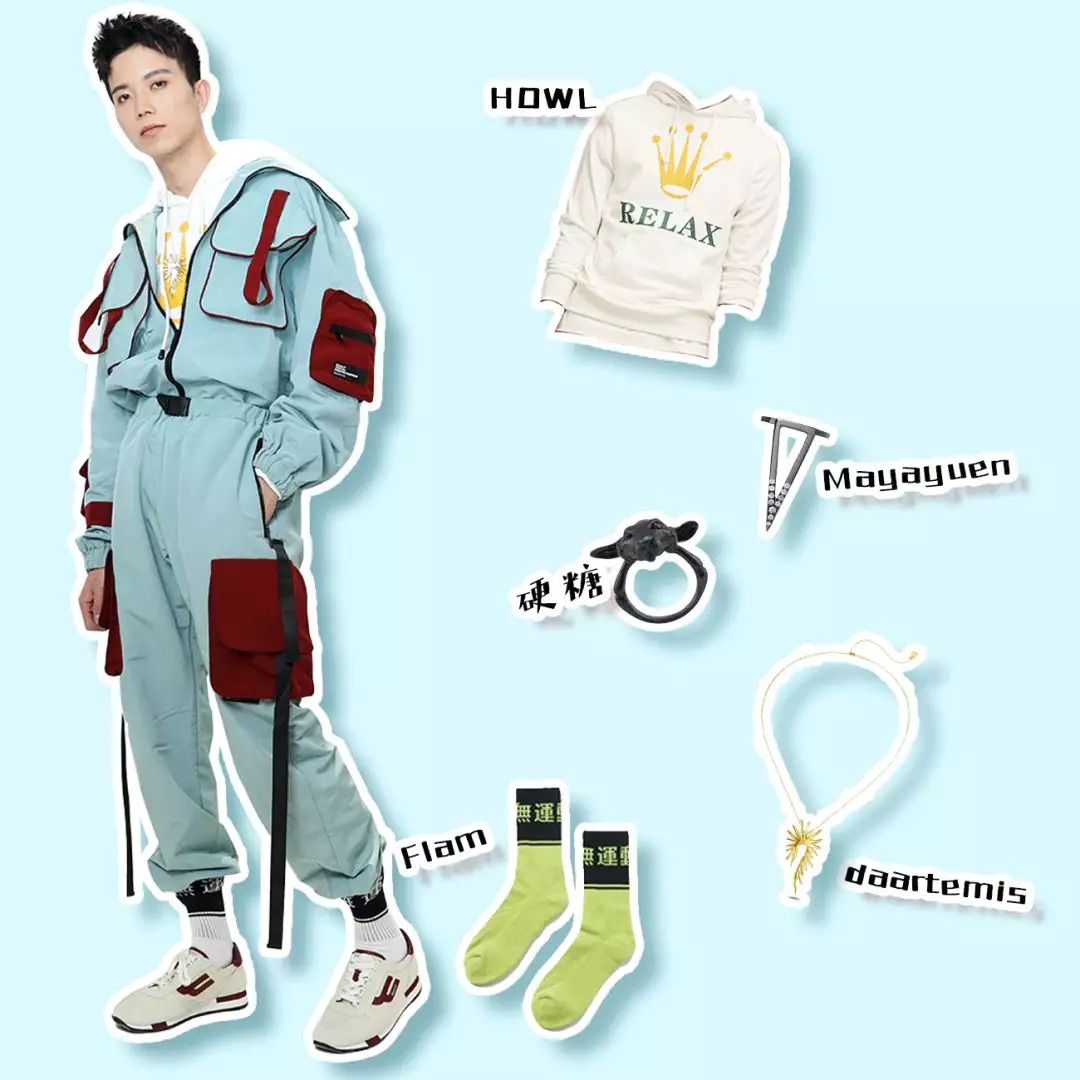 毕竟是美术生,比普通男生懂点搭配。不过他说,平时老一身没啥创意的黑白灰运动装,这次想突破一下自己,走走加点颜色的街头风。