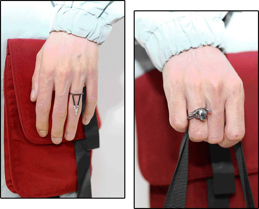我平时也蛮爱戴戒指这种时髦的小玩意儿,比如上次去纽约看维密时戴的Mayayuen,像个小铠甲似的,我还挺喜欢的。