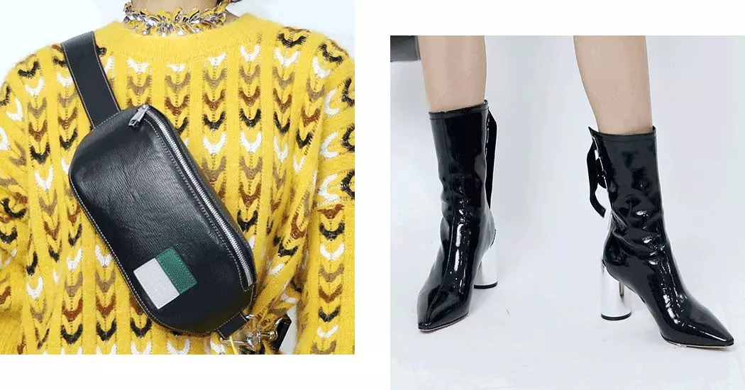 北山制包所的胸包斜背、肩背、提手上都很好看,后面绑带的漆皮中筒靴,比起袜靴、及踝靴更加率性点。