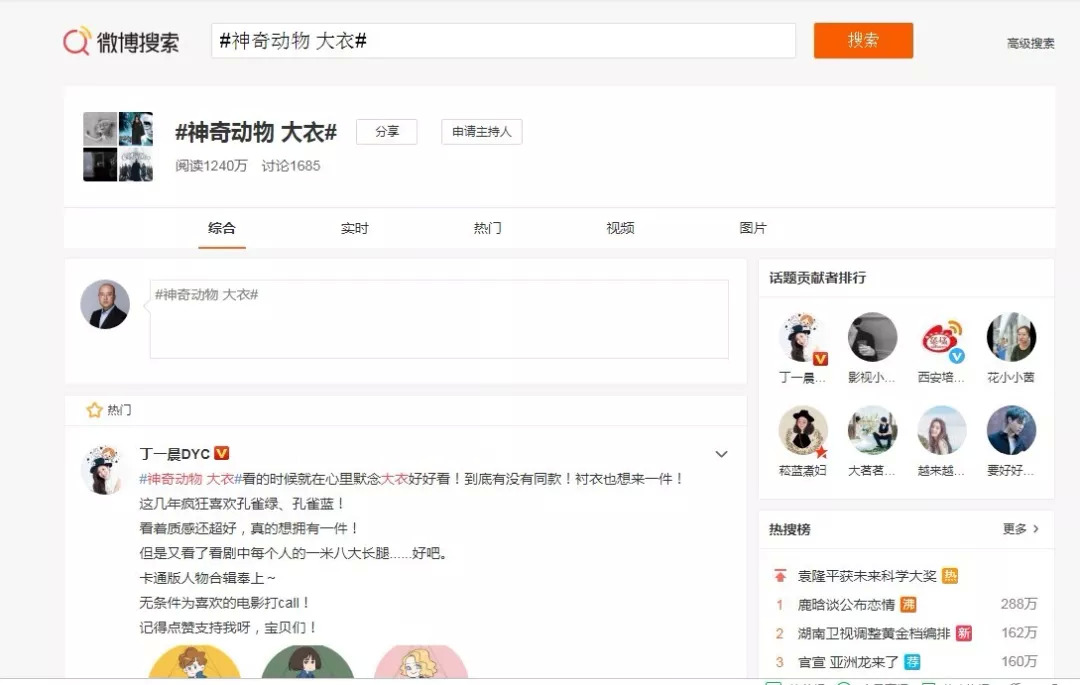 (微博#神奇动物 大衣#话题页面截图)
