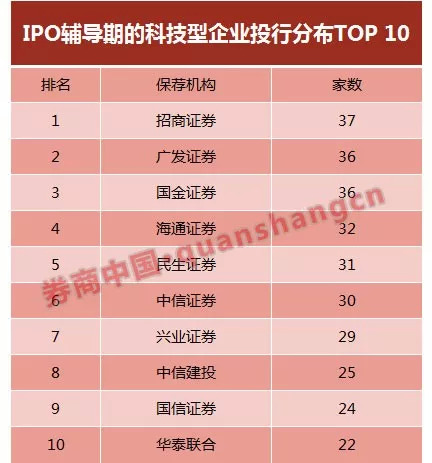 同时,进入IPO辅导期的科技型企业在选择投行方面,也较为集中。