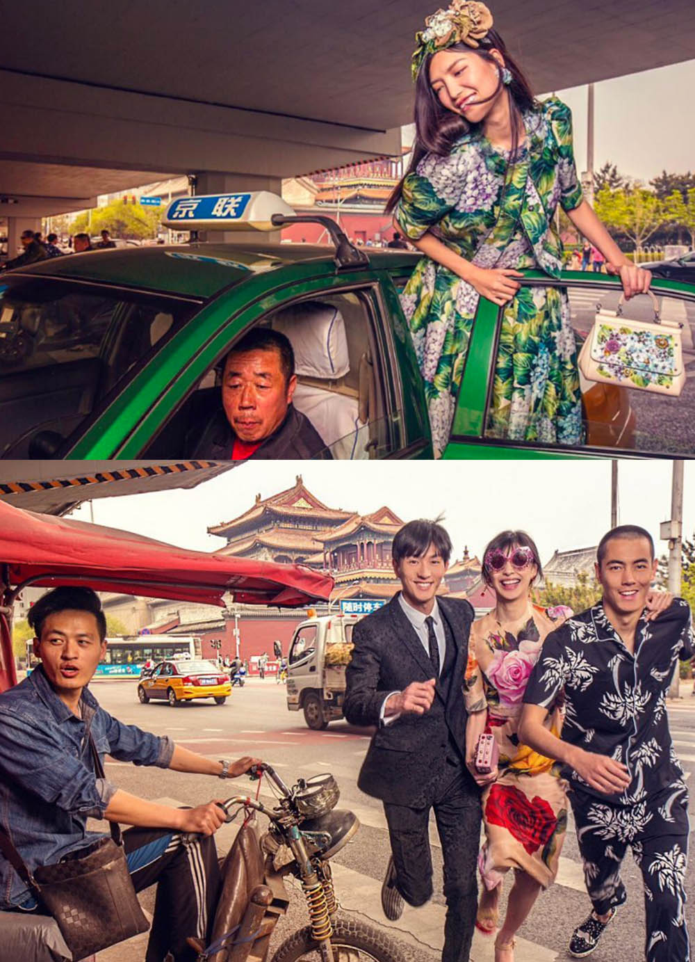 实际上,这已不是杜嘉班纳第一次冒犯中国消费者了。2017年4月,在一组针对中国市场的宣传照中,模特身穿杜嘉班纳的时装,在北京的一些地标(长城、天安门、胡同等等)与普通市民合影,似乎想要营造一种“以游客身份体验当地生活”的气氛。同样的拍摄套路还被用于针对香港和日本市场的宣传照中,如果将这三组大片对比来看的话,日本的一组取景地相对多元,既包括传统的日式街道,也包括高楼林立的商业区,而香港和中国大陆的两组照片中,古老、破败、落后的场景则占据了多数,这组照片当时就因“矮化中国”而遭到质疑。这样的拍摄视角的确透露出西方世界对东方的一些刻板印象,例如照片中的香港像极了海外的唐人街;另一方面,这种“落后”本身在他们看来又是具有审美价值的,它与一种原始的、原真的(authentic)、未被(西方的、商业的、文明的气息)污染的“美感”联系起来,而对这种“美感”的渲染,似褒实贬,背后仍是一种殖民主义居高临下的检阅心态。