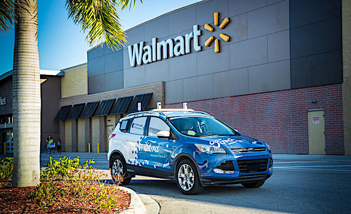 未来两个月内,沃尔玛顾客可以在线选购各式商品后,使用福特自动驾驶测试汽车提供的送货服务。