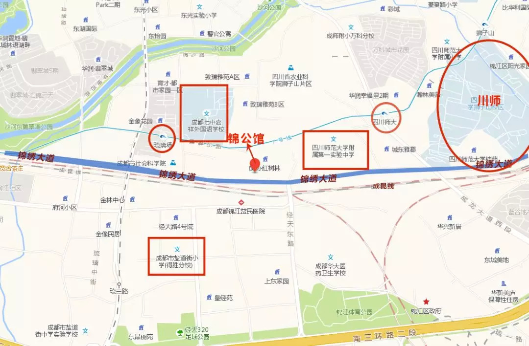 实话实说,碧桂园锦公馆的位置是真心好。项目地处中环路锦绣大道段,距离川师南大门只有一两分钟的车程。该项目周边的名校多,也是一大亮点,具体该正读哪个学校,稍后在配套介绍里详述。