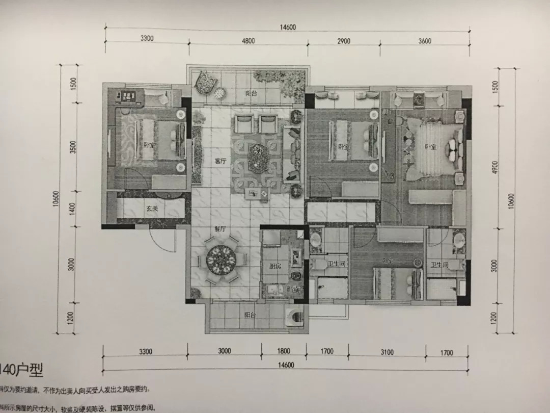 高层B户型:建面约126㎡四室两厅两卫