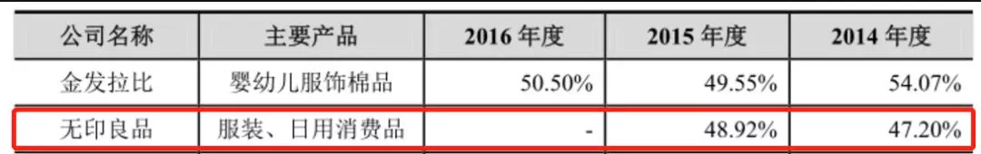 虽然招股书中对此解释称,由于公司主要销售渠道为电商与直营门店,减少了中间流通环节,而且对产品的定位是高端市场。然而有趣的是,全棉时代一直对标的无印良品毛利率也还不到50%。