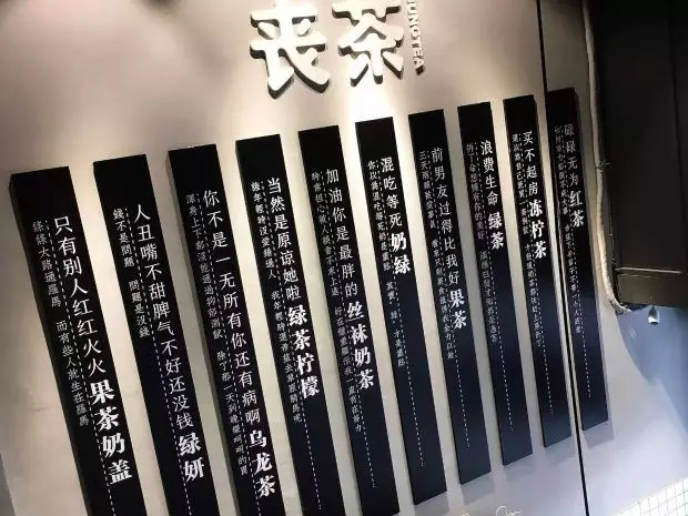 比如,一度很火的“丧”系列,正是抓住了年轻人在都市生活重重压力下的不知所措。而一杯“碌碌无为红茶”“一事无成奶绿”,是年轻人温柔宣泄负面情绪的一种形式。