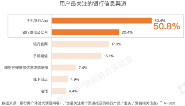在对银行数字化银行渠道的调研发现,银行手机APP越来越成为用户办理银行业务的主要渠道。同时,通过对市场份额较高的20家银行APP数量进行统计发现,共中17家银行拥有2个或2个以上的APP,报告认为,数量繁多的APP无形中增加了用户的认知和操作负荷。“无需多个App,要明确手机端主战场,整合全渠道提升用户体验。”受访者普遍表示。