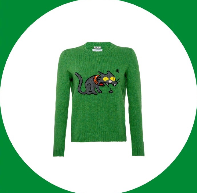 Miu Miu女孩一定是个吸猫少女。在最新推出“Little Cats”胶囊系列中,Miu Miu《辛普森一家》的Snowball II,《猫儿历险记》的Marie, 还有《爱丽丝梦游仙境》中爱丽丝的猫印在了毛衣之上,,温暖又可爱。