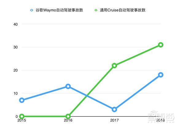 ▲2015年-2018年谷歌、通用无人车事故数量对比(加州地区)