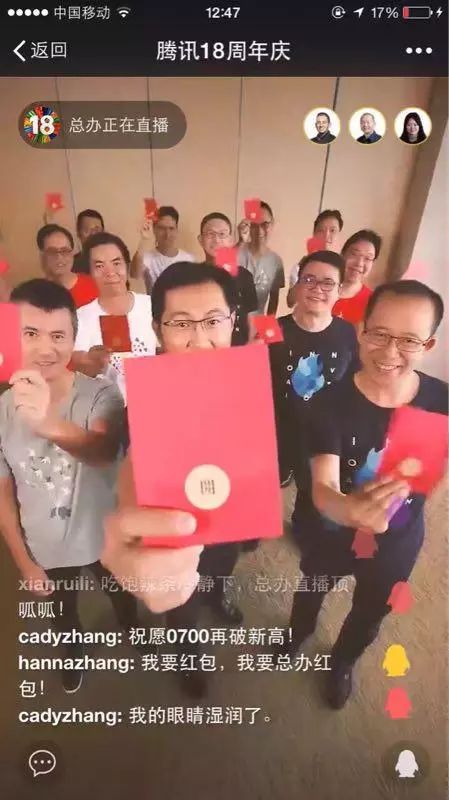 当时,马化腾给所有在职员工配送300股腾讯股票,不算后续腾讯股价的最高峰,仅仅按照当时的腾讯股价,腾讯公司每人获赠的股票价值就已经约为6万港币。除此以外,很多前员工也收到了腾讯的礼品和红包,马化腾共计给所有腾讯员工(包括前员工)派发了总计3000万元红包。一时间,朋友圈到处都可以看到新老腾讯员工们的消息,让腾讯和马化腾的风头出尽。