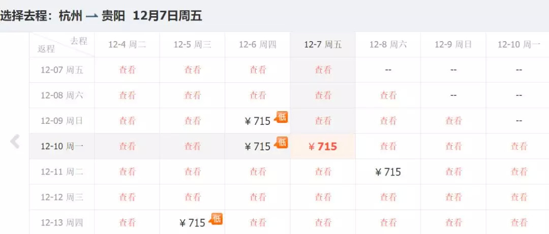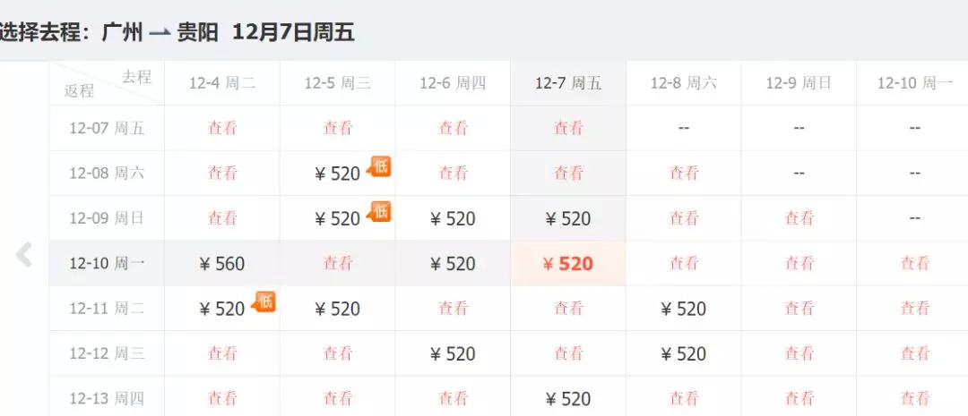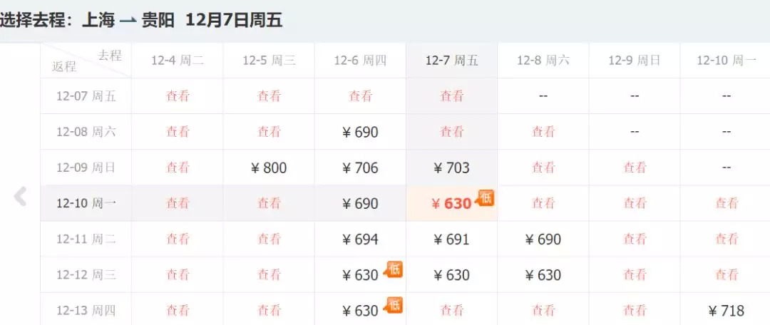 而且,12月从上海和广州前往贵阳,往返机票最低只要600+和500+!杭州出发也只要700出头。