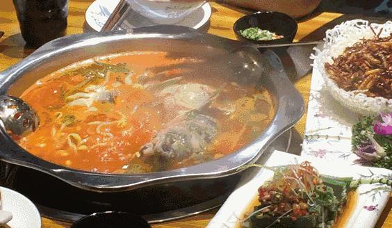 在苗家,素来有“先喝汤,来年风调雨顺;多吃鱼,年年有余”的说法,所以酸汤鱼上桌,要先喝一口酸汤。肥美的鱼肉经过酸汤的浸煮,更加鲜嫩多汁,再蘸上特制蘸水,酸爽的鱼肉掺着辣椒的香,简直将“鲜”发挥到了极致。