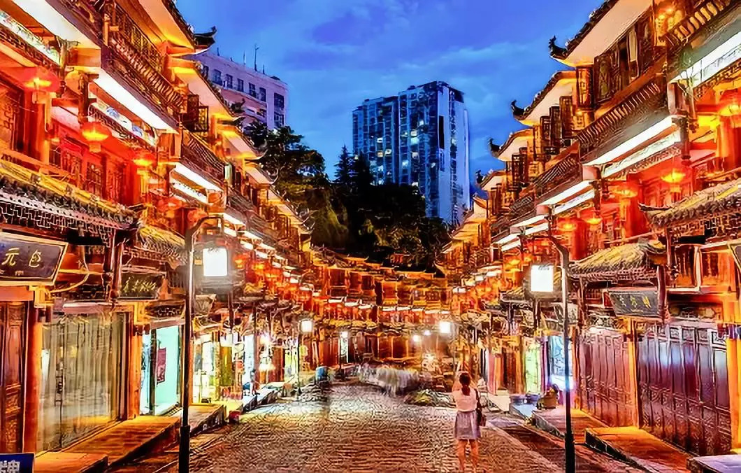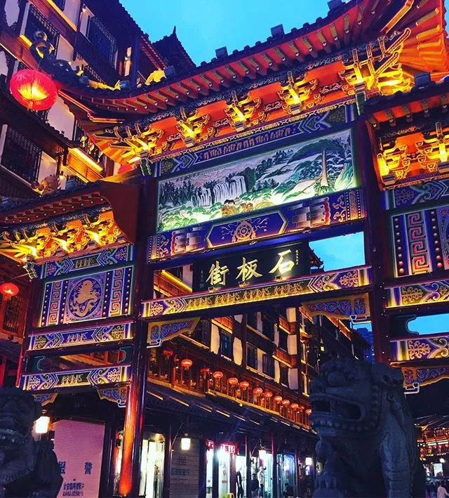 石板街位于都匀市区内,88间古式门楼青瓦红墙随着街道蜿蜒上升,天黑以后街上灯火亮起,整条街漂亮的无法言喻。