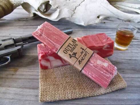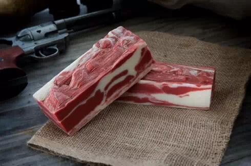 Outlaw Soaps出品的培根香皂,看上去是块培根,其实口味也是很丰富的,如独角兽便便口味、刽子手口味、超级英雄口味……到底是什么鬼