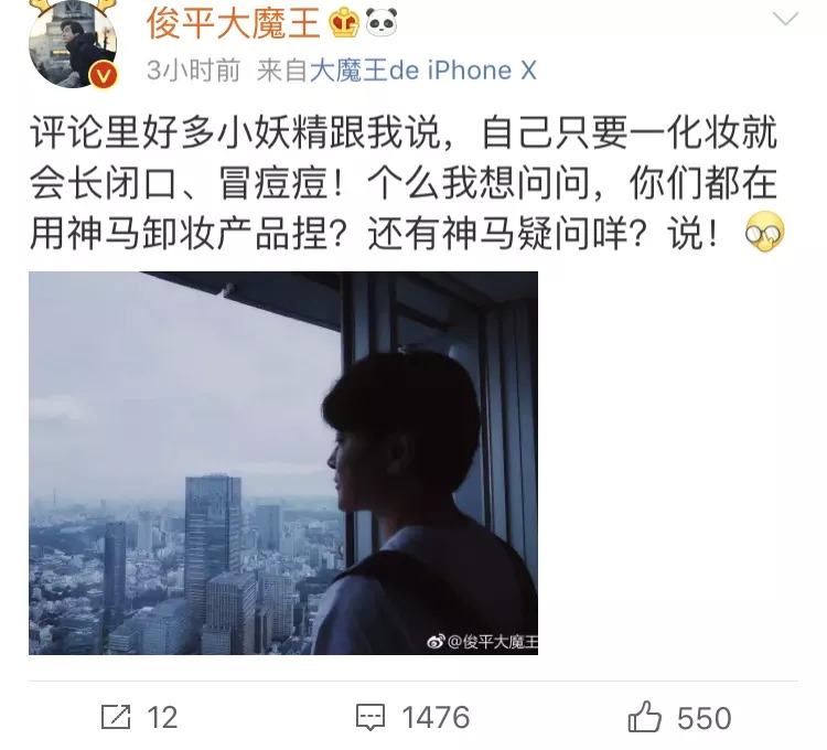 2016年,@俊平大魔王在微博上diss了当时正红的素颜霜,穿着白大褂闯入了大众视野。他在实验室将普通面霜和二氧化钛搅拌在一起,给观众生动展示了素颜霜的诞生。