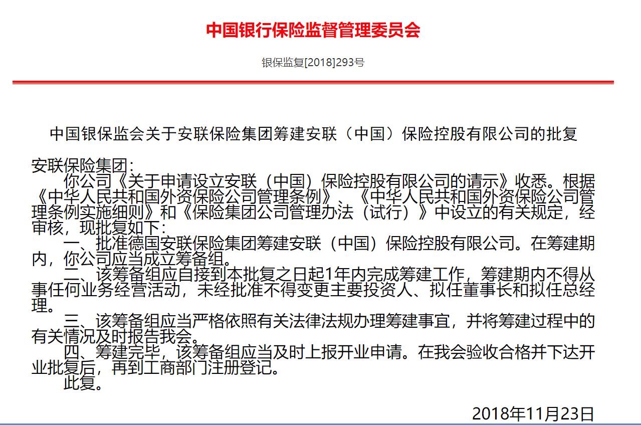 其中,安联(中国)保险控股有限公司将成为我国首家外资保险控股公司。