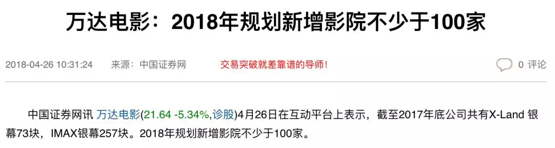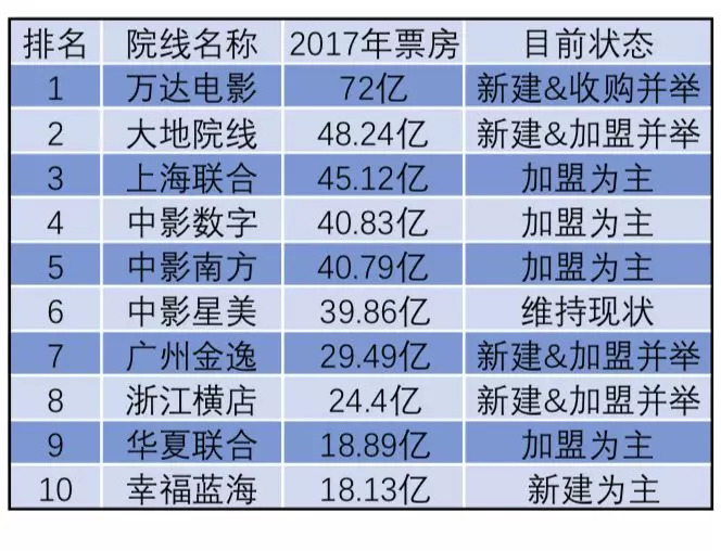 根据今年年中的资料显示,即便在寒潮来临之前,万达院线也并没有停止其新建和收购影城的步伐,今年万达规划新增影院数量不少于100家,同时收购影城的数量也会接近数十家。