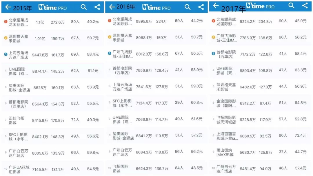 由此带来的是影城票房的再次下滑,在2015年,想进入全国票房top10的门槛是7145万,到了去年,突破这个成绩便可能是全国票房的三甲了。
