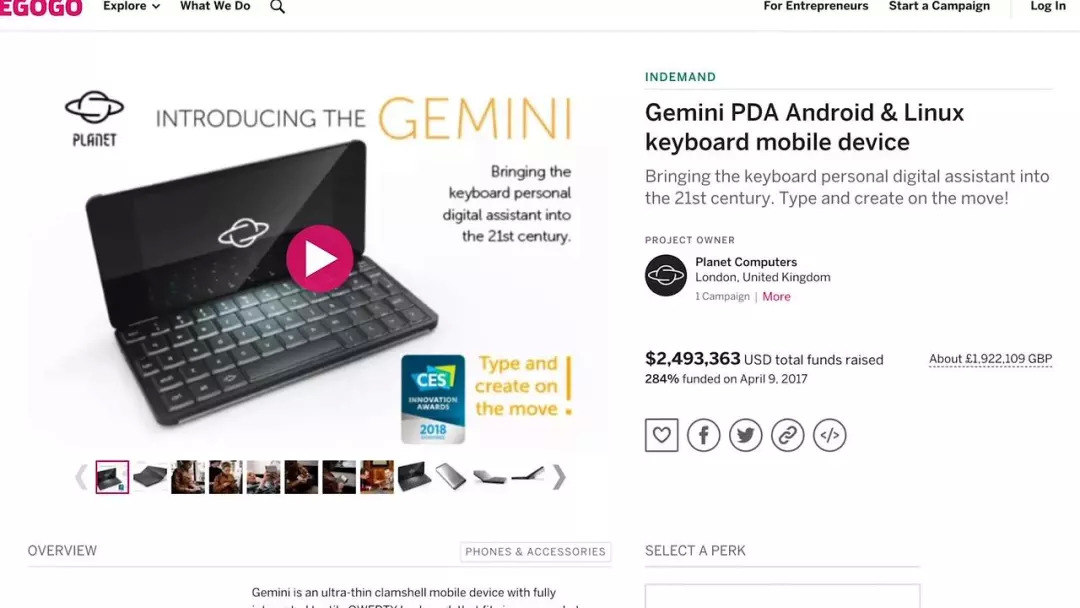 在此之前,团队推出的袖珍移动电脑概念产品 Gemini PDA 已经荣获 2018 CES奖,并获得超过 200 万美元的众筹资金支持。