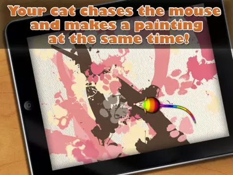 类似这样的脑洞还有很多,比如另一款针对喵星人设计的手游《Paint for Cats》,它的玩法则是先设置好色板与画笔的形状和颜色,再通过小老鼠的吸引,让猫在捕捉的过程中留下痕迹,抓老鼠不是重点,重点是猫最后留下的“印象派”画作。