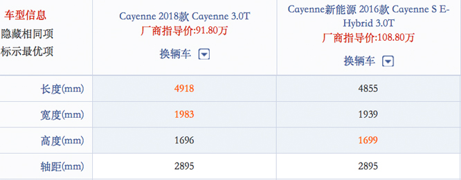 2018款保时捷Cayenne燃油版相对停产的2016款Cayenne燃油版来说,价格上涨了3万元,而2016款Cayenne起价才88.80万元。2019款保时捷Cayenne插电混动版却从上一代的108.80万元下降到94.80万元,下降了14万元,而动力从以前匹配的3.0T减配到2.0T,反而百公里加速从以前的5.9秒提升到5秒。