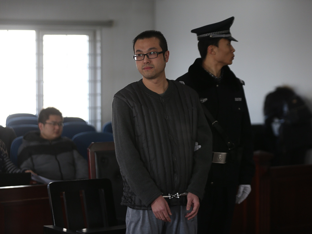 2016年2月1日,王海站在了北京市朝阳区温榆河法庭的被告席上,他身穿黑色棉衣背心,戴着一副黑框眼镜,手被锁上了镣铐。