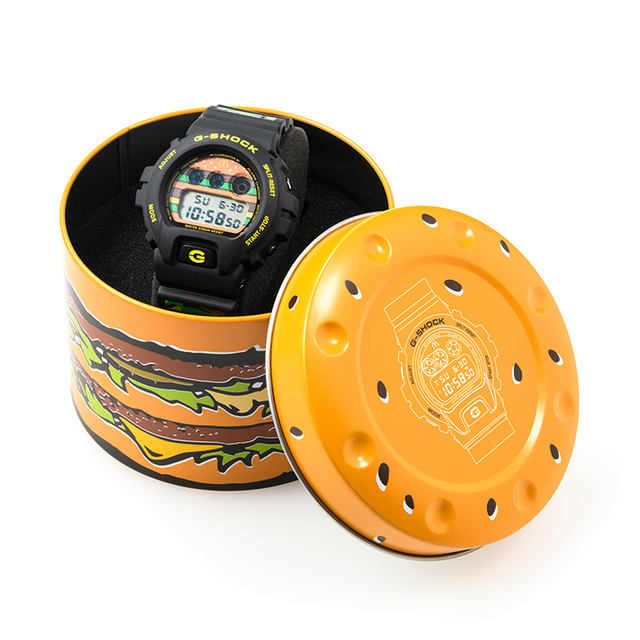 日本麦当劳也曾与卡西欧旗下的G-Shock联合推出过一款巨无霸元素的手表: