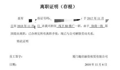 邮件的附件是一份离职证明,文中写明:由于协商一致原因提出离职。