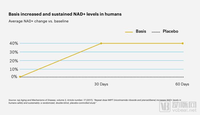 Elysium Health公司生产的日常膳食补充剂Basis通过提高人体中NAD+的含量,来延长寿命。其成分包括烟酰胺核糖(nicotinamide riboside)和紫檀芪(pterostilbene)。