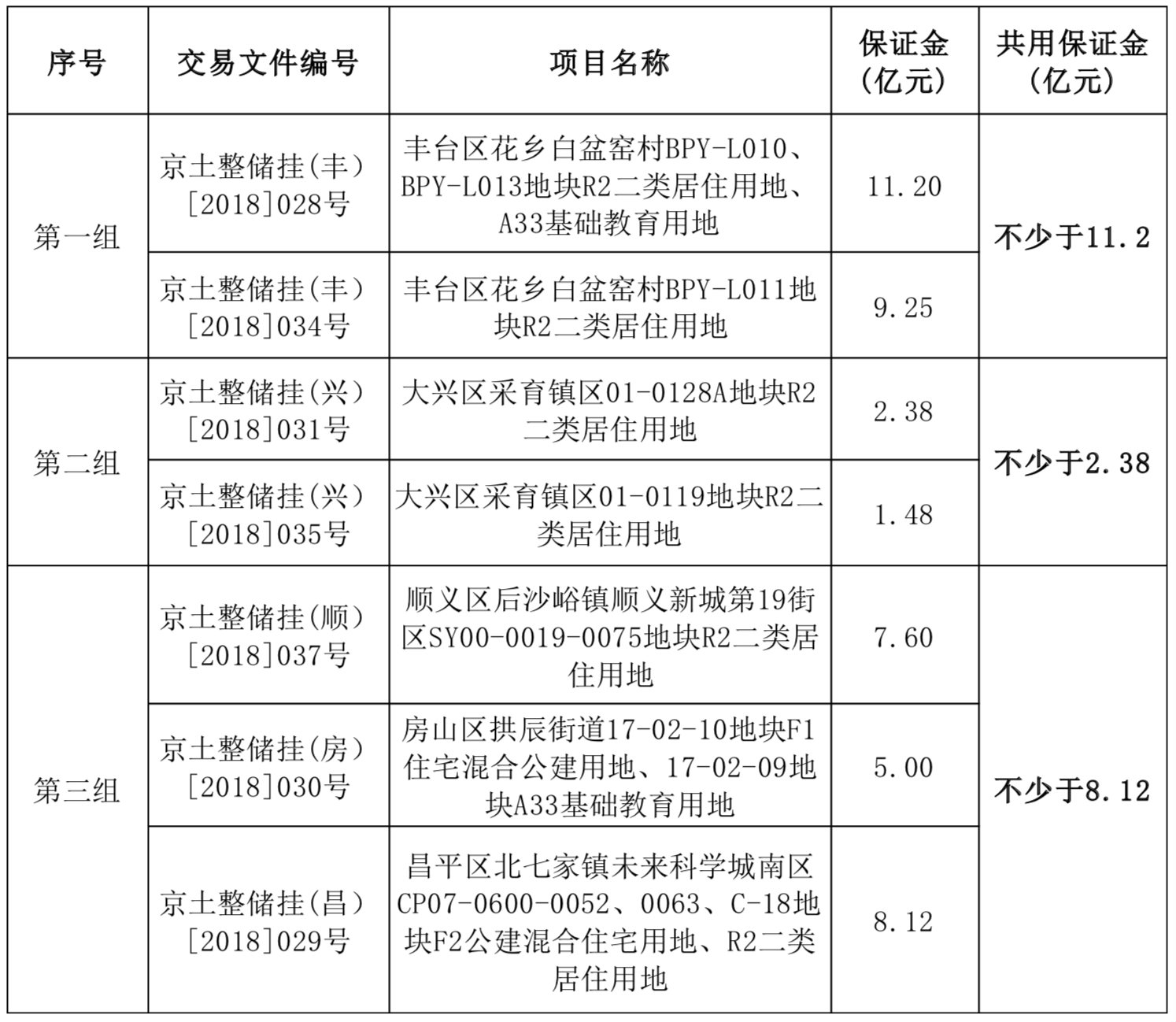 基于此,13宗地中的7宗地被划分为三组,采用共用竞买保证金方式进行拍卖,另6宗地将按照原竞拍方式进行。