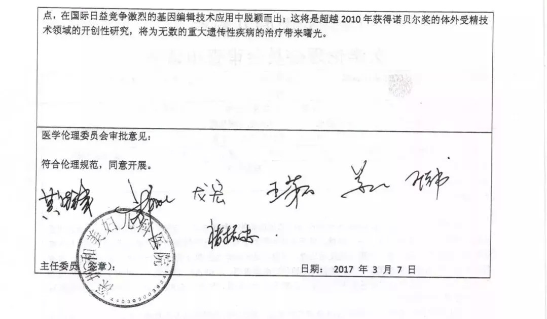其次则是该实验所面临的伦理问题,虽然在贺建奎的这项实验号称通过了某伦理委员会的审查,然而审查机构却是深圳和美妇儿科医院。一家莆田系医院就有权利批准人体基因实验,基因实验管控背后所存在的风险更加令人担忧。