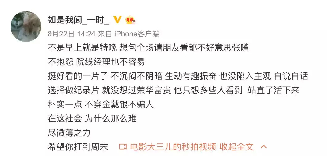 很少发微博的朴树,为电影《大三儿》特意发了一条情真意切的微博