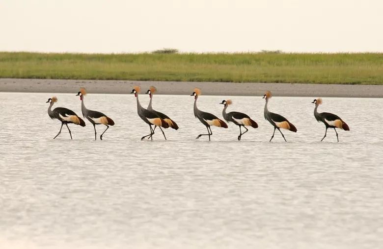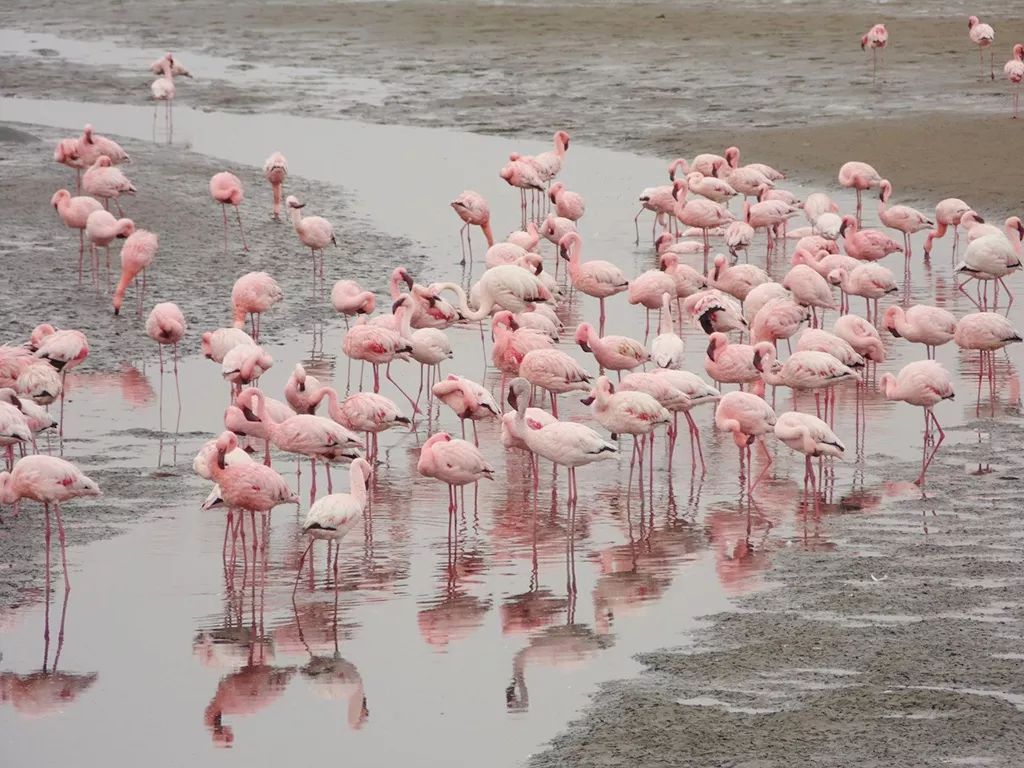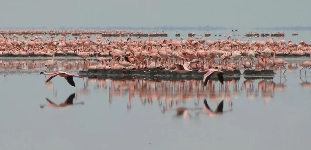 雨季时草皮积蓄了水分,一大群火烈鸟与其他体型的候鸟从天而降,在这里做短暂停留。