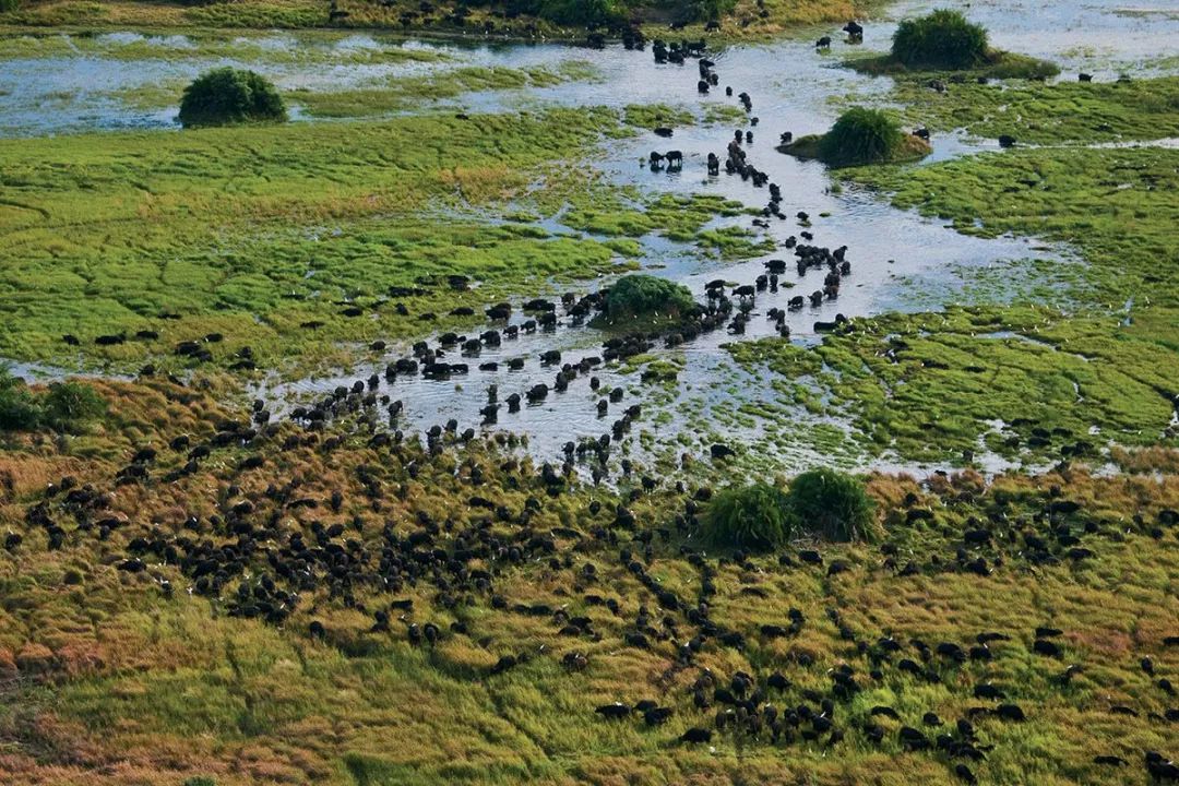 尽管Moremi在规模上不能和塞伦盖蒂、马赛马拉的迁徙军团相提并论,但这样水草氤氲的动物迁徙,在别处是极为罕见的。