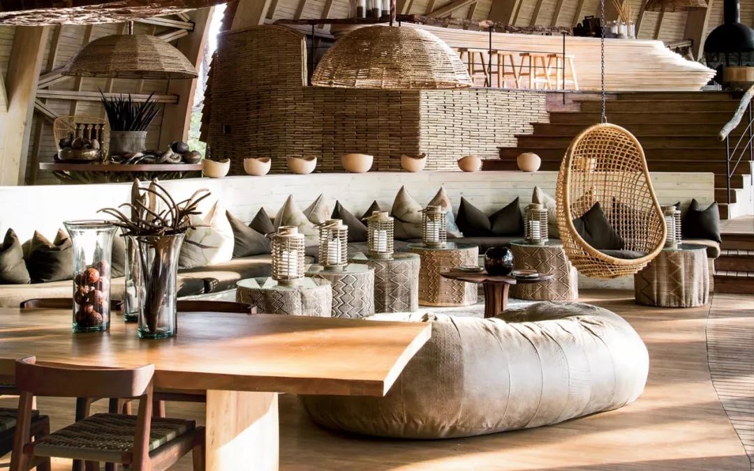 在设计和建造这些木质的客房时,外观的灵感来自穿山甲的那身盔甲和织巢鸟的窝,所以看起来既流畅又非常牢固结实。房内有些铜饰、木雕、轻织品和工艺精度很高的提篮,总的来说,没有打破整体的协调。
