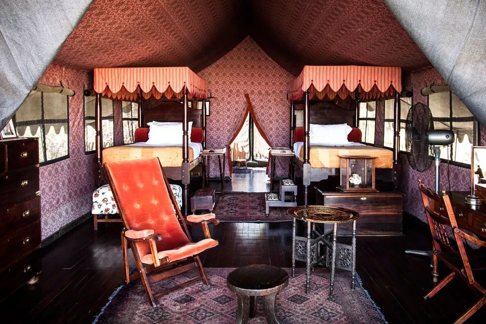 帐篷内配有吊扇,装饰简洁,最多只以非洲古董作点缀,给人带去对狩猎时代小小的追念。房间挑高而建,前部有瞭望甲板,和一张摇来晃去的吊床。