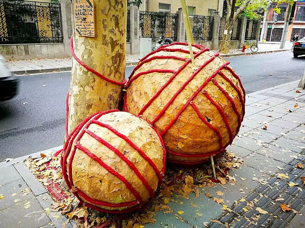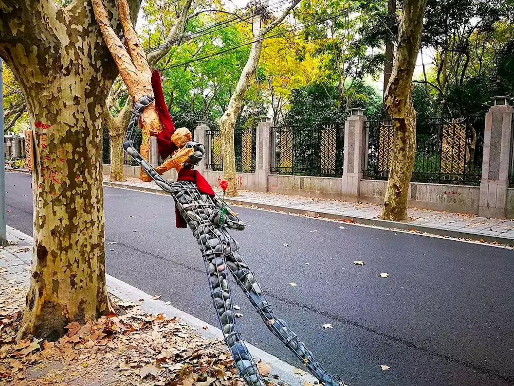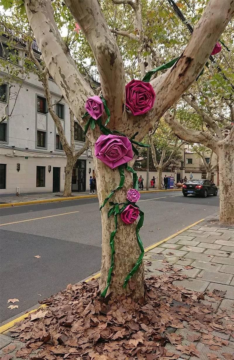去年也不容易,请的是中外艺术家一起打造。有个别艺术家打飞的来,涂上红唇,亲遍了一棵树,就算交了作业。