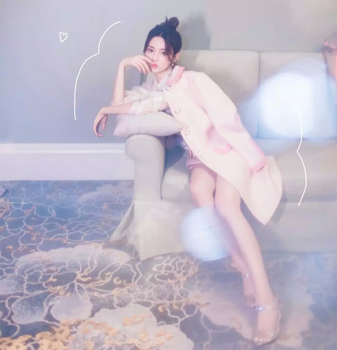 我先碰到了杨超越,我夸了一下她今天穿的粉色大衣和她很搭。