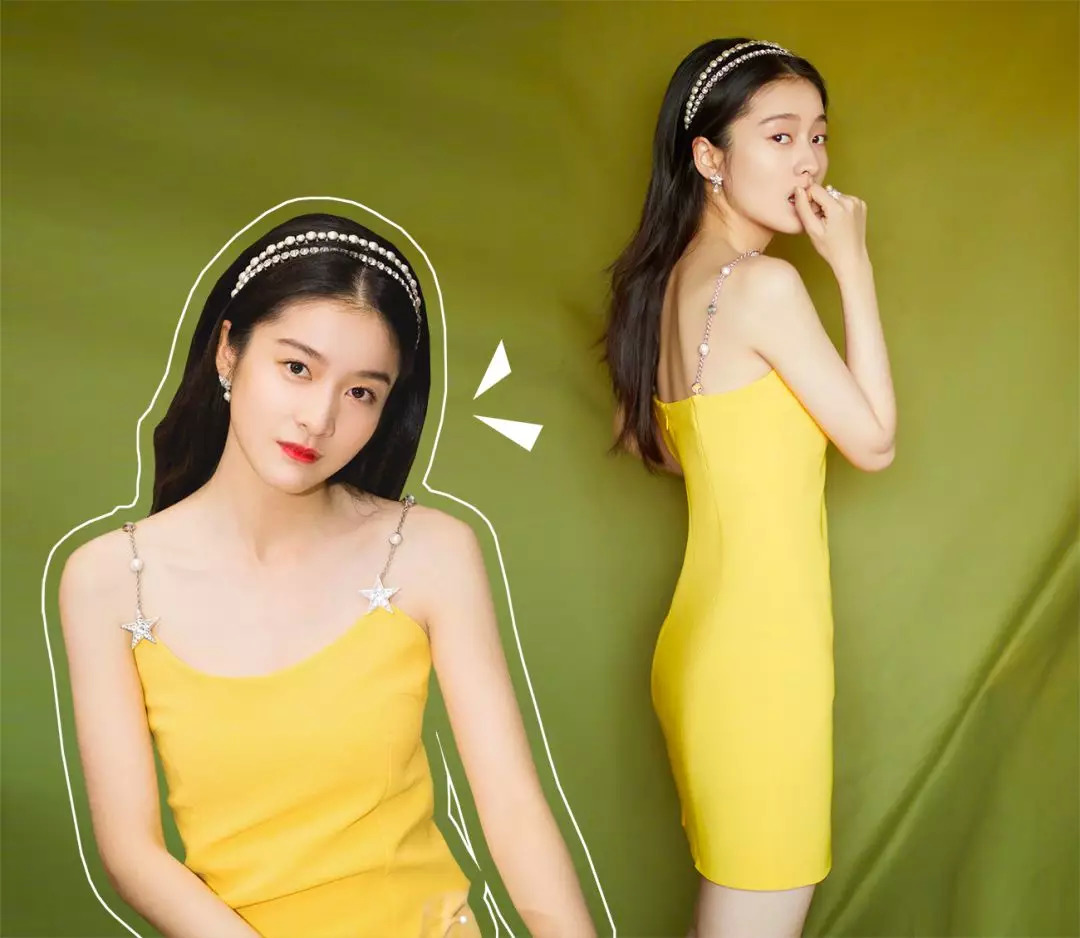 那我就问问学妹们吧。张雪迎说,自己这身胸有点低的黄色吊带裙,都能让她不自在半天。