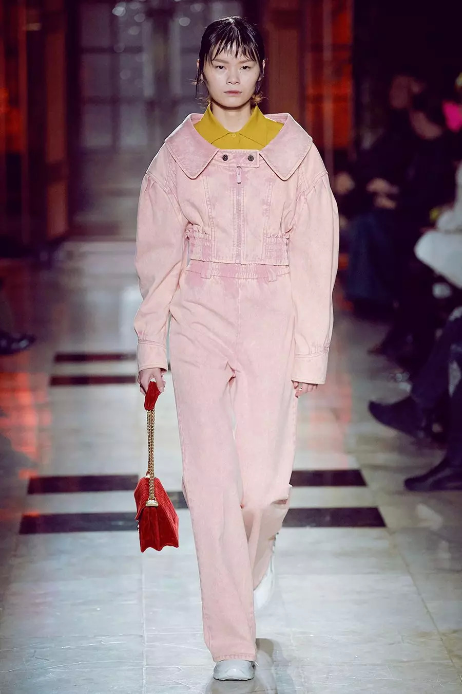 后来我碰到了李兰迪,中戏校友集齐了。她那天穿得蛮规矩的,问她最喜欢秀上哪件,她说是又酷又少女的粉色皮夹克。