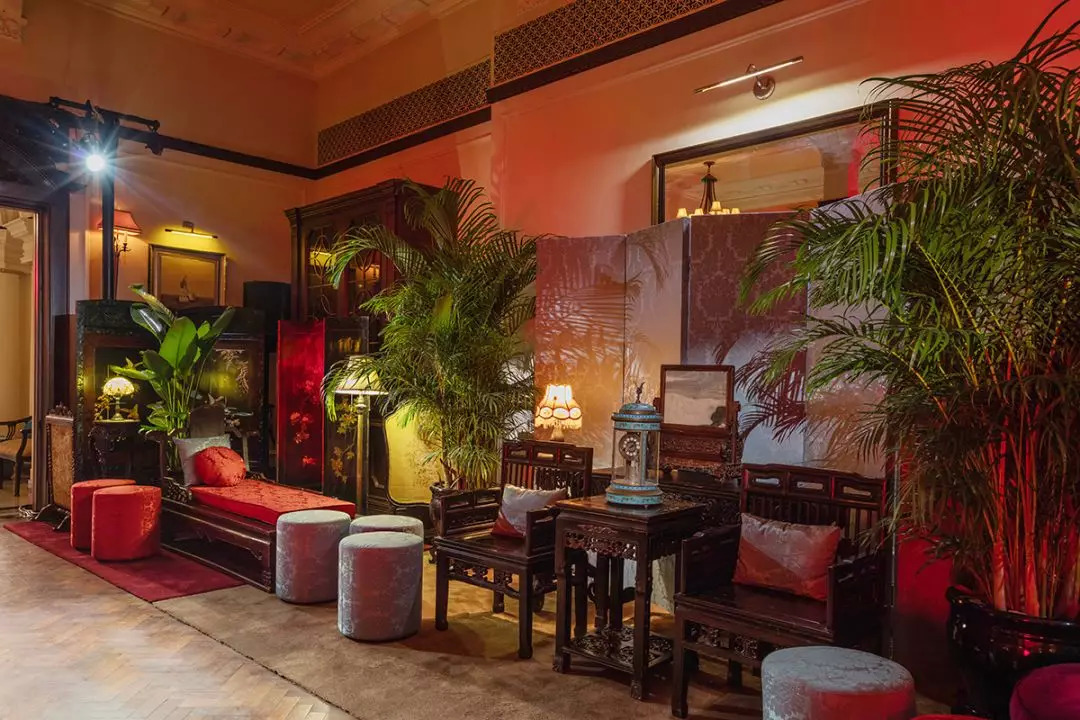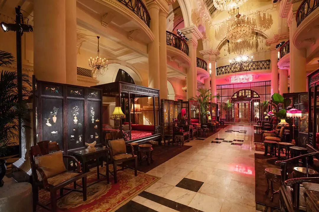 比如,文艺复兴风格的大吊灯、穹顶,和老上海夜生活那摩登的红色灯光;