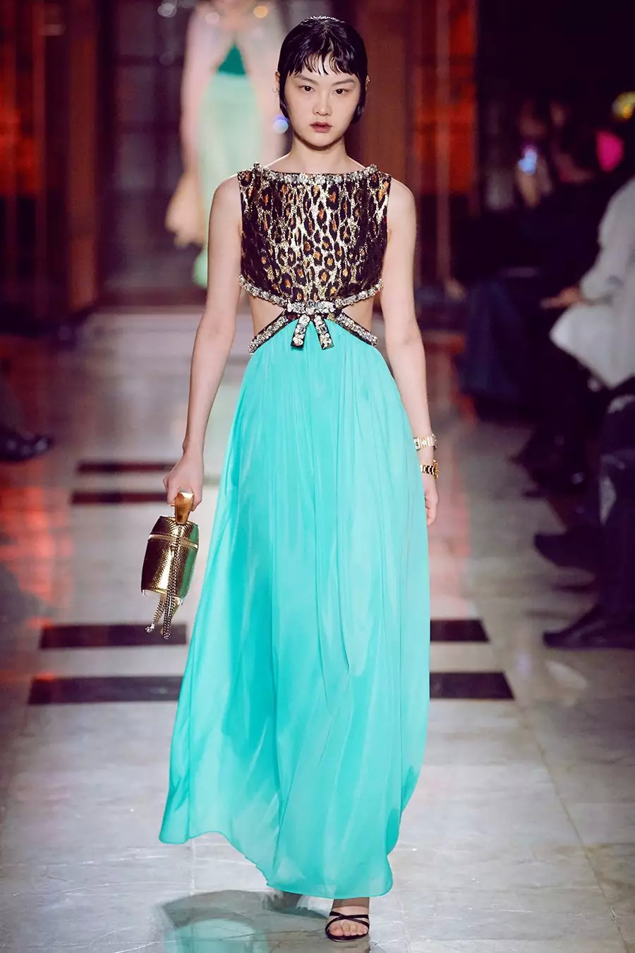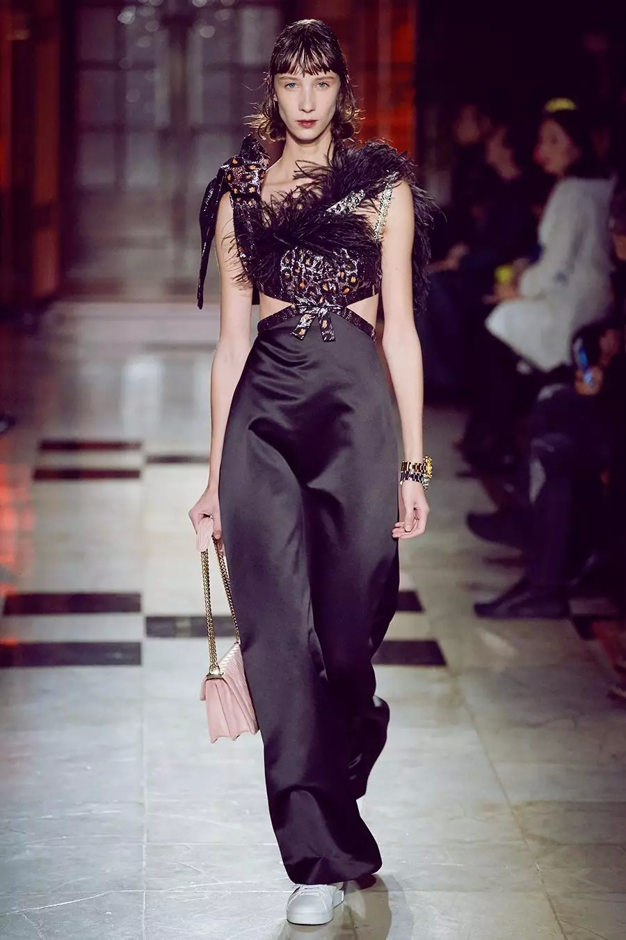 这一季的风格不光很有个性,还把透明薄纱、丝绸、鸵鸟毛、皮革、豹纹这几种个性元素揉到了一块。