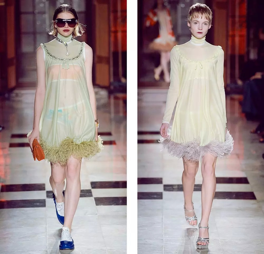 所以近些年越来越流行“丑美”,就是因为太甜、太美的容易腻,有个性才真能吸引人。就像那件透明纱裙,它就很有Miu Miu的态度。