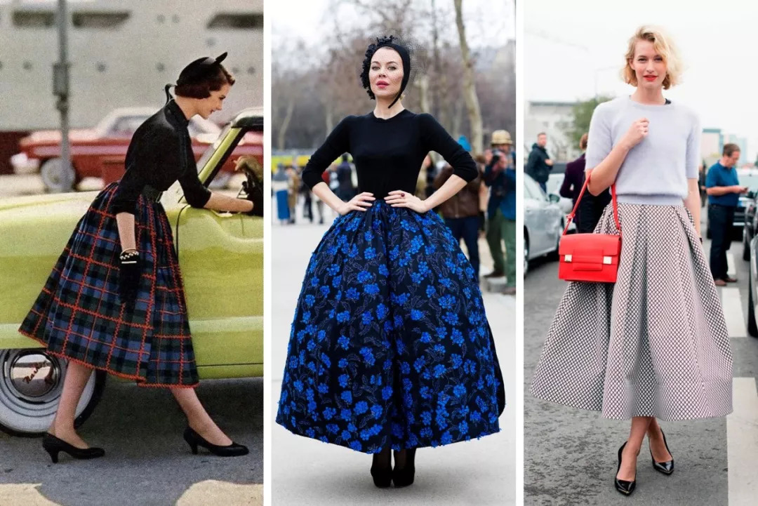 那个年代为了凸显臀腰差,还有不少更隆重的圆摆伞裙。复古迷Ulyana贡献过太多这一经典look。