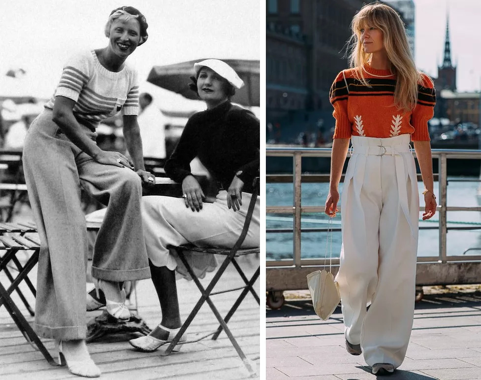 Coco Chanel就是针织衫+阔腿裤look当仁不让的推动人。