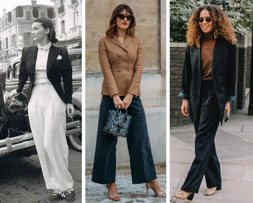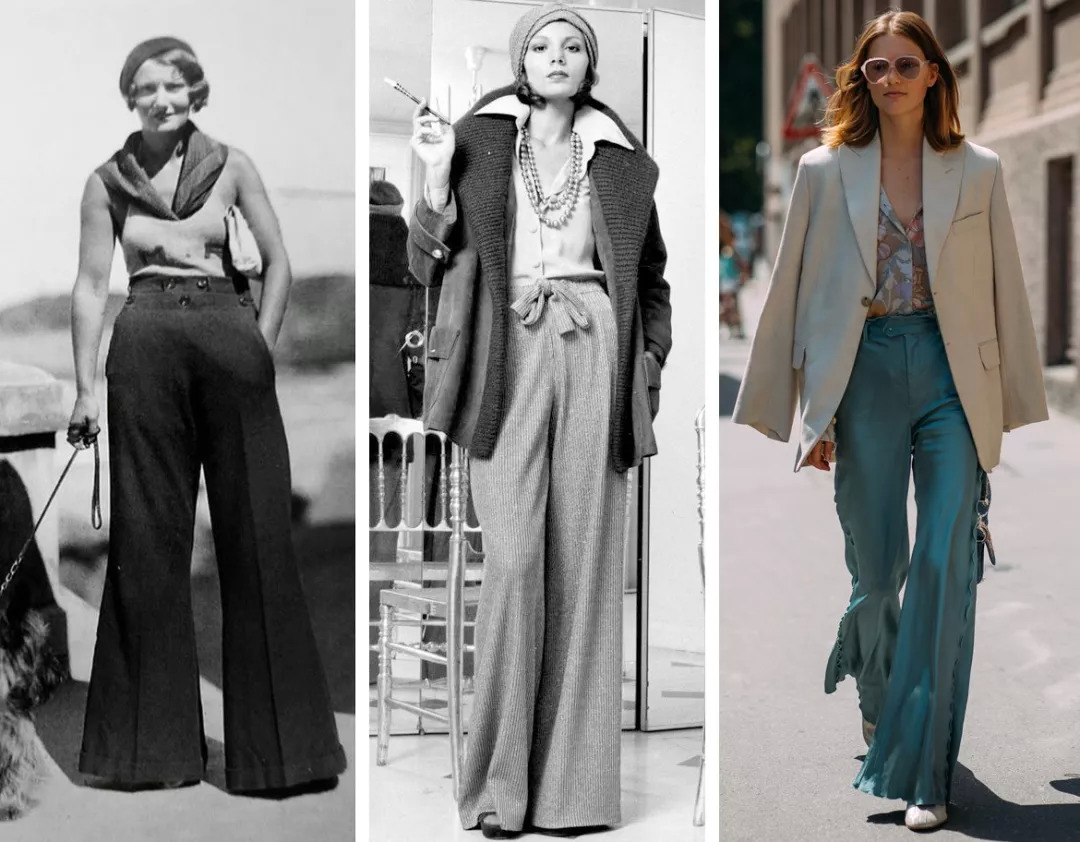 20年代,随着女权运动的推行,女孩们开始摆脱束缚,抛弃丰胸束腰,追求自由。她们像男人一样穿上了阔腿裤。