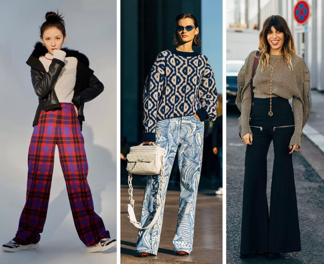 现代街拍中,个性化的元素会让针织衫+阔腿裤更独特。像是格纹裤、印花+印花、设计感针织衫,都是当代时装精的吸睛法宝。