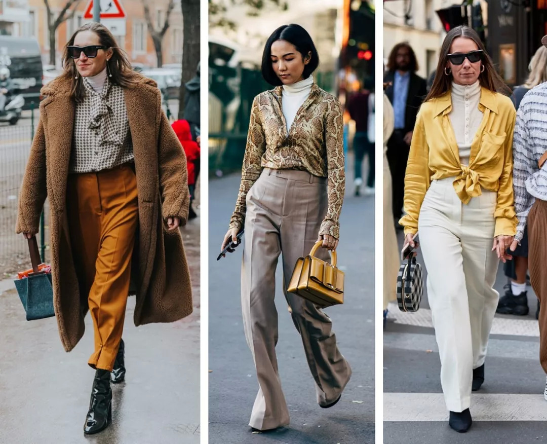 除了针织衫,衬衫+阔腿裤的搭配在时尚史中也有着重要地位。