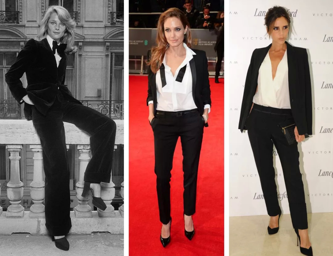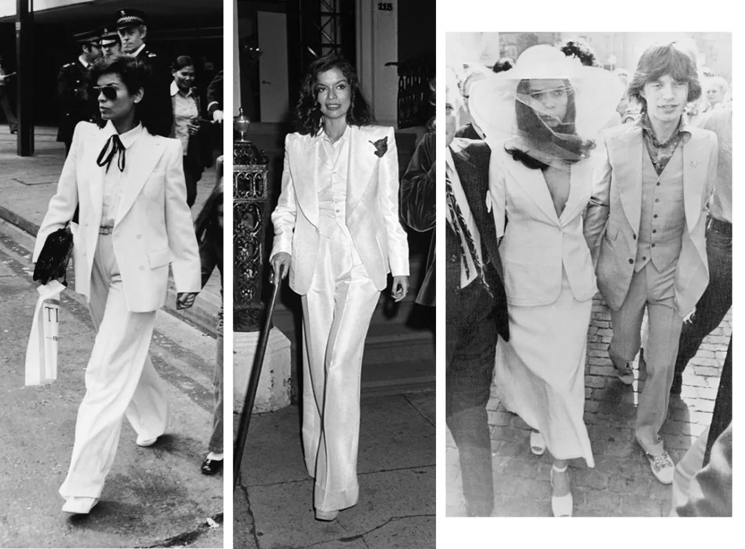在时尚圈有着举足轻重地位的Bianca Jagger更是对吸烟装爱到痴迷,以至于最后直接穿了这身把自己嫁给了摇滚巨头Mick Jagger。